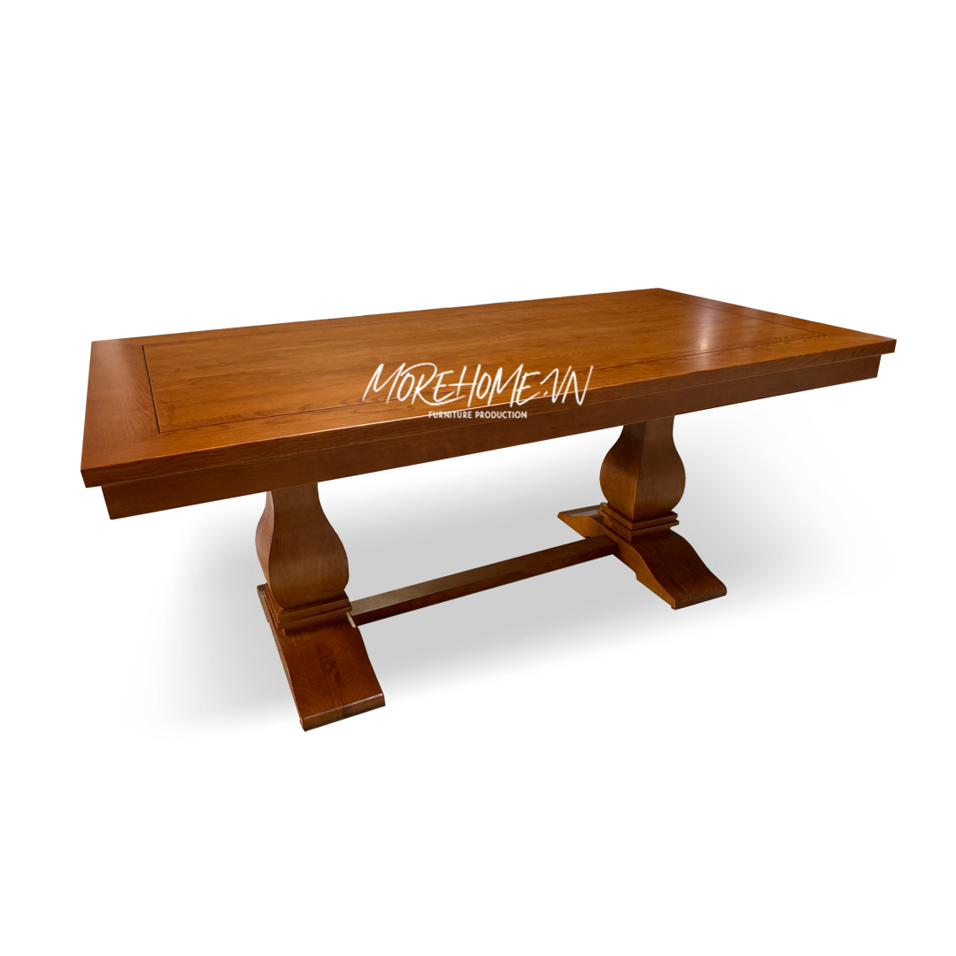 Bàn ăn gỗ tự nhiên cao cấp được nhập khẩu và gia công thẩm mỹ, cùng với độ bền bỉ của nó, sẽ tạo nên một không gian phòng bếp sang trọng.