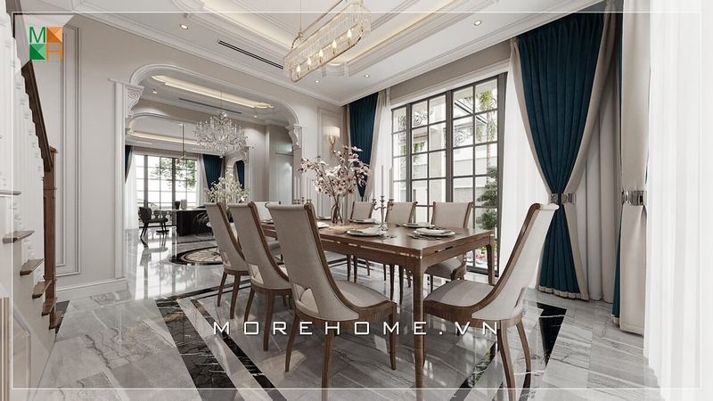 Tạo ra một không gian mở trong biệt thự, nhà phố để kết nối các thành viên trong gia đình, bằng cách thiết kế một phòng ăn gần cầu thang, để tạo ra một cảm giác ấm áp và yêu thương.