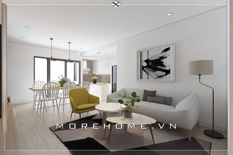 Bàn trà hiện đại với thiết kế gỗ công nghiệp độc đáo, nhẹ nhàng là sự lựa chọn hoàn hảo cho phòng khách chung cư.